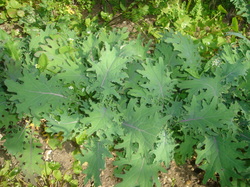 Red Russian Kale is probably my favourite kale, you will find the smaller leaves in our winter salads, and the bigger leaves in mixed kale and stir fry bags. It's a vey sweet kale leaf, ranging in colour from light green new growth (as pictured left), through to the dark purple leaves that have had exposure to cold pemperatures.Even my 10 year old eats it straight from the plant (and the only other green things she eats are peas and green smarties!)But I think it really is at it's best now, when a bit of spring warmth encourages the plants to do what comes naturally (produce seeds) and in the process it produce lots of shoots, which are fantastic in stir fries, or very lightly steamed, or just as a snack (the sweet