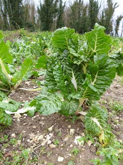 This is my (slightly altered, using what was available on the farm in March)) version of 'Herb Pie' from the book 'Jerusalem' by Yotam Ottolenghi and Sami Tamimi. It makes 6-8 good size portions, so you could halve the recipe.I used500g chard, stems and leaves finely shredded but kept seperate50g rocket30g flat parsley30g wild garlic10g fennel leaf1 large onion, cut up finely100g mature cheddar, grated175g goats cheese2 medium eggs, beaten250g filo pastryolive oilSaute the onion in oil for 5-10 mins, add the chard stems and cook for another 4-5 mins. Add the chard leaves, turn up the heat, and stir as they cook for a few mins. Finally add the (chopped) green herbs and cook for another 2 mins.Transfer this mixture to a colander so any excess liquid can drain away. Once this mixture is cool add the cheese, eggs and season with salt and pepper. This is the filling.Lay out five sheets of filo on a pie dish (the one I used is about 30 x 20cm) brushing each layer with olive oil, fill with the chard/herb/cheese/egg mix and top with another 5 layers of filo, again brushing with olive oil.Bake at 200 C / Gas 6 for about 40 mins, and leave to cool slightly before serving, also delicious cold.The recipe in Jerusalem also contained celery, spring onion, mint and dill, which weren't available on the farm when I made it (in March), which is why I substituted the wild garlic, and a small bit of fennel that was just pushing through in my garden. And I used a goats cheese instead of the ricotta and feta in the original recipe.Anyway, it was absolutely delicious and should sway even a reluctant chard eater!I don't have a photo, you'll have to look in the book for that, and there are several other chard recipes in there that I look forwardwill be trying too.
