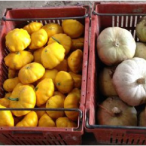 Left = Patty Pan, right = Crown Prince We usually grow around 8-10 different varieties of squash at Ripple Farm, with the UFO shaped 'Patty Pan' squash being the first to be ready in July, and the 'Crown Prince' storing until April / May but this year we managed to have squash all year round. Last summer was particularly good for squash, our plants got enough rain to establish well, and then plenty of sun which the plants convert into sugars, helping the squash keep better and taste better too !We keep them in a fairly low-tech 'warm-store', as they don't like to get too cold! Its just a corner of our shed, insulated with wooden eco-board and using a small electric fan-heater to stop the temperature dropping too low in the winter (with electricity supplied by 'Ecotricity' )