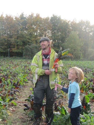 Thanks to all that came on our annual farm walk last Sunday, we had beautiful October weather and a great bunch of people joining us, including lots of enthusiastic children and a few dogs. Martin took everyone through the forests of kale, past our spinach and chard patches, then onto 'Prescott' field, where we are growing most of our cabbages, sprouts and broccoli this year. Then down to the bottom of the filed, where there were still a few pumpkins not yet picked up, so the children were able to select themselves a pumpkin. Add to that the apple-bobbing and a taste of Sarah's beetroot and chocolate cake (recipe coming soon!) ,an enjoyable afternoon for all.Its always good to meet new, old customers and potential customers, thanks to Jackie for the photos.