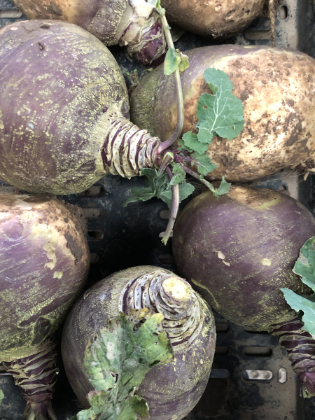 And some of our swede are enourmous, but that's a good thing as they taste great and keep very well, so you don't have to eat one all at once! My favourite way to serve is to make swede mash or puree, with butter and/or olive oil, salt, plenty of pepper and often garlic too. Roast swede/swede chips are very tasty too.